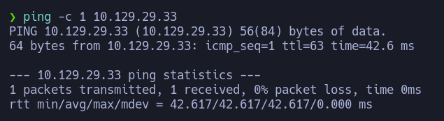1 packets transmitted, 1 received- Indica que el paquete enviado ha sido recibido con éxito por lo tanto => La máquina víctima está encendida y tenemos conexión con ella