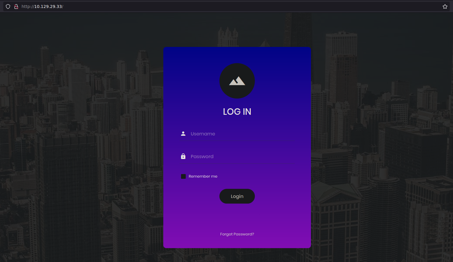 Tratamos de acceder a la web desde la dirección IP dada: http://10.129.29.33. Esta es ahora la apariencia que tiene la web: